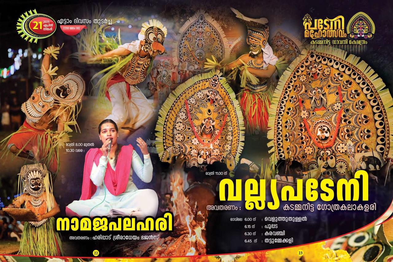 കഴിഞ്ഞദിവസം രാത്രി അടവി ദിനത്തിൽ കടമ്മനിട്ട പടേനിക്കളത്തിൽ ആഴിയിൽ പനമരം ഉയർത്തി അടവി ചടങ്ങുകൾ നടത്തി. വെളിച്ചപ്പാടെത്തി ഭഗവതിയുടെ അനുവാദം നൽകിയതോടെ
