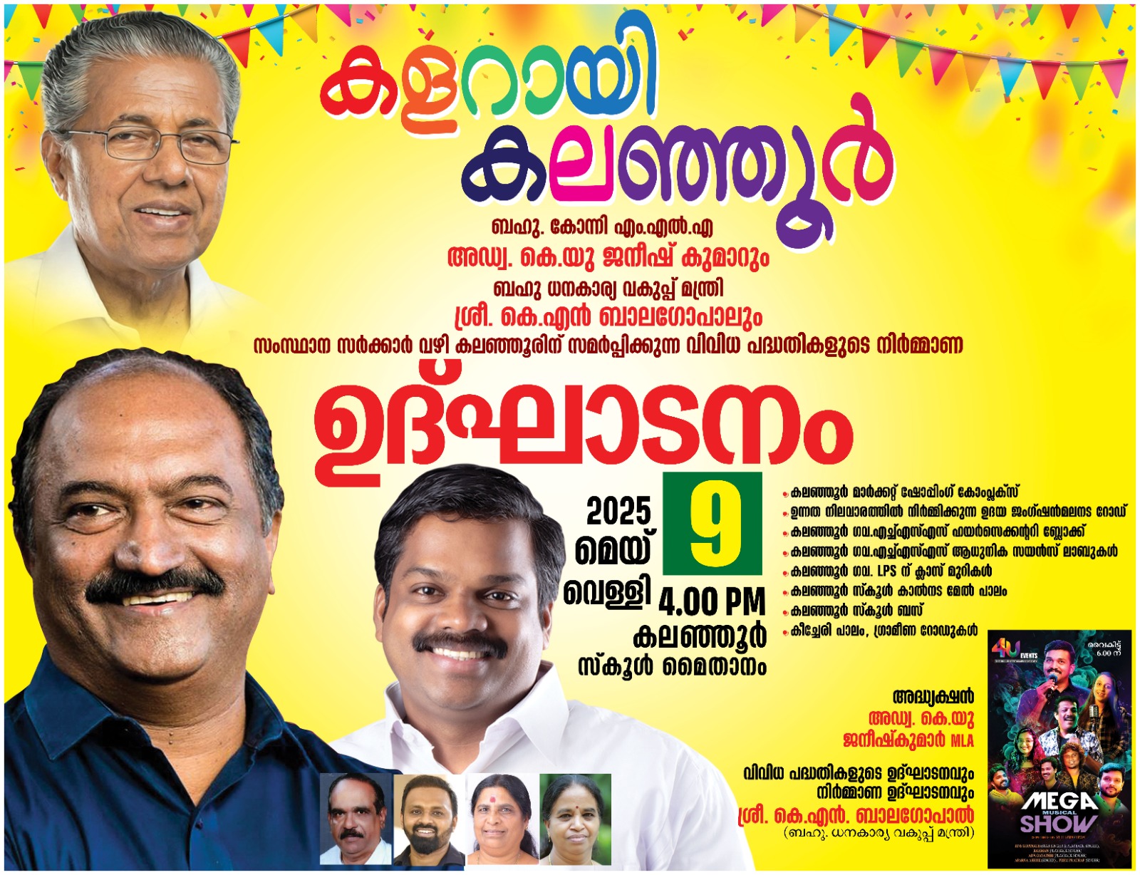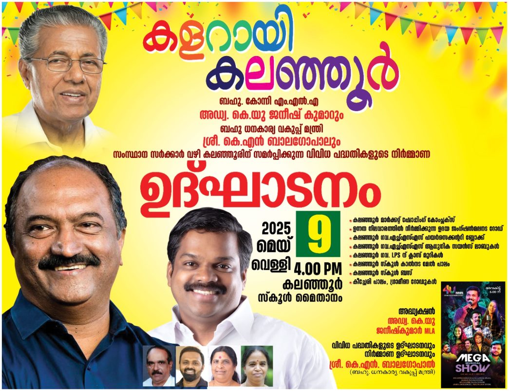(2025 മെയ് 9) 4 മണിക്ക് കലഞ്ഞുർ സ്കൂൾ മൈതാനിയിൽ ധനകാര്യ വകുപ്പ് മന്ത്രി കെ എൻ ബാലഗോപാൽ നിർവഹിക്കും. ചടങ്ങിൽ