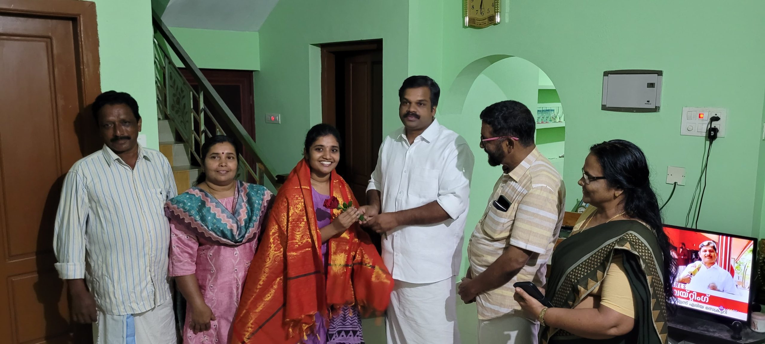 മകളാണ്. സഹോദരൻ അനന്തകൃഷ്ണൻ.വീട്ടിലെത്തി ആശംസകൾ അറിയിച്ച എംഎൽഎ യോടൊപ്പം ബ്ലോക്ക് പഞ്ചായത്ത് അംഗം തുളസിമണിയമ്മ, സിപിഐഎം കോന്നി ഏരിയ സെക്രട്ടറി ശ്യാംലാൽ എന്നിവരും ഒപ്പം ഉണ്ടായിരുന്നു