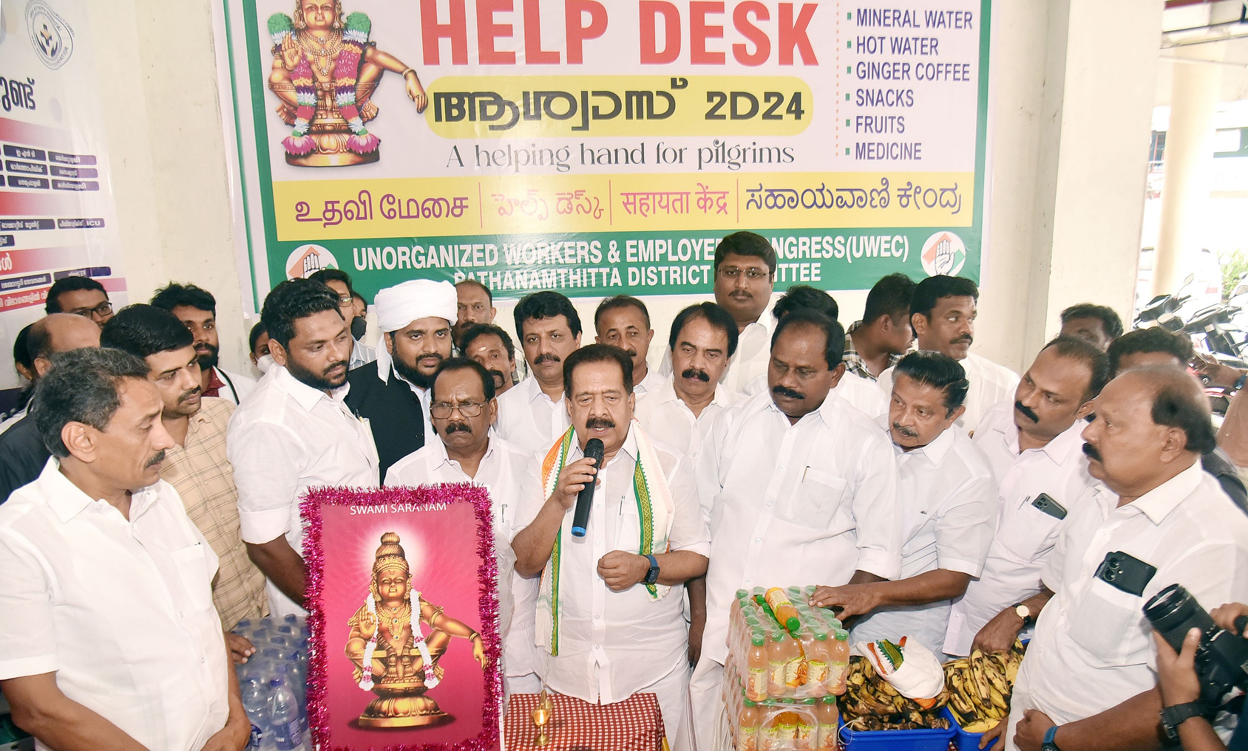പത്തനംതിട്ട: പതിവു തെറ്റിക്കാതെ ശബരിമല തീർത്ഥാടകർക്ക് ആശ്വാസമേകി, കെ.എസ്.ആർ.ടി.സി ബസ് സ്റ്റാൻഡ് പരിസരത്ത് ഹെൽപ്പ് ഡസ്ക് പ്രവർത്തനം ആരംഭിച്ചു.ദേശീയ അസംഘടിത തൊഴിലാളി കോൺഗ്രസ് പത്തനംതിട്ട ജില്ലാ കമ്മിറ്റിയാണ് പ്രവർത്തനങ്ങൾക്ക് നേതൃത്വം നൽകുന്നത്.ഹെൽപ്പ് ഡസ്ക്കിൻ്റെ പ്രവർത്തനോദ്ഘാടനം കോൺഗ്രസ് വർക്കിംഗ് കമ്മിറ്റി അംഗം രമേശ് ചെന്നിത്തല ഉദ്ഘാടനം ചെയ്തു.ശബരിമല ഹെൽപ്പ് ഡസ്ക്കിൻ്റെ പ്രവർത്തനം മാതൃകാപരമാണെന്ന് അദ്ദേഹം പറഞ്ഞു.ജില്ലാ പ്രസിഡൻ്റ് നഹാസ്പത്തനംതിട്ട അദ്ധ്യക്ഷത വഹിച്ചു.