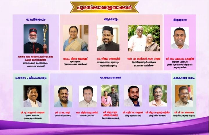 ആരോഗ്യ രംഗത്തെ ഭരണമികവിന് മന്ത്രി വീണാ ജോർജ്, സാഹിത്യരംഗത്തെ സംഭാവനകൾക്ക് മരണാനന്തര ബഹുമതിയായി മോറാൻ മോർ അത്തനേഷ്യസ് യോഹാൻ പ്രഥമൻ മെത്രാപ്പോലിത്ത, ആരോഗ്യ ജീവകാരുണ്യ മേഖലയിലെ മികച്ച പ്രവർത്തനത്തിന് ഫാ. സിജോ പന്തപ്പള്ളിൽ, പ്രവാസി സംരംഭകനും ജീവകാരുണ്യ മേഖലയിലെ സമഗ്ര സംഭാവനക്കും ഷാജഹാൻ റാവുത്തർ, ഗ്രാമീണ ആതുരസേവനത്തിന് ഡോക്ടർ ദമ്പതിമാരായ ഡോ. എ ചെറിയാൻ, ഭാര്യ ഡോ. രാജമ്മ, എന്നിവർക്കു യുവ സംരംഭകനും തൊഴിൽ ദായകനുമായ പി കെ റജി, മൗണ്ട് സിയോൻ സ്ഥാപനങ്ങളുടെ ഉടമ സാം ഏബ്രഹാം കലമണ്ണിൽ, സ്വിക്കെൻസ് റിഡെഫനീഡ് പ്രൈവറ്റ് ലിമിറ്റഡ് ഉടമ രാജീവ് കെ രാജൻ, ഗ്രാമീണ സംരംഭക മികവിന് ബിജു കെ ജോർജ്ജ് ചെല്ലിയിൽ, ആറന്മുള കണ്ണാടിയുടെ മുഖ്യശിൽപ്പികളിൽ പ്രമുഖൻ കെ പി അശോകൻ, വടശ്ശേരിക്കര അയ്യപ്പ ആശുപത്രി ഡയറക്ടർ ഡോ. ഷിജിൽ മാത്യു വർഗ്ഗീസ്, ഭക്ഷ്യ വിതരണ രംഗത്തെ മാതൃകാ ദമ്പതികൾ ബിജു രാജൻ ആൻഡ് ധന്യാ രാജൻ എന്നിവർക്കുമാണ് പുരസ്കാരങ്ങൾ സമ്മാനിക്കുന്നത്.